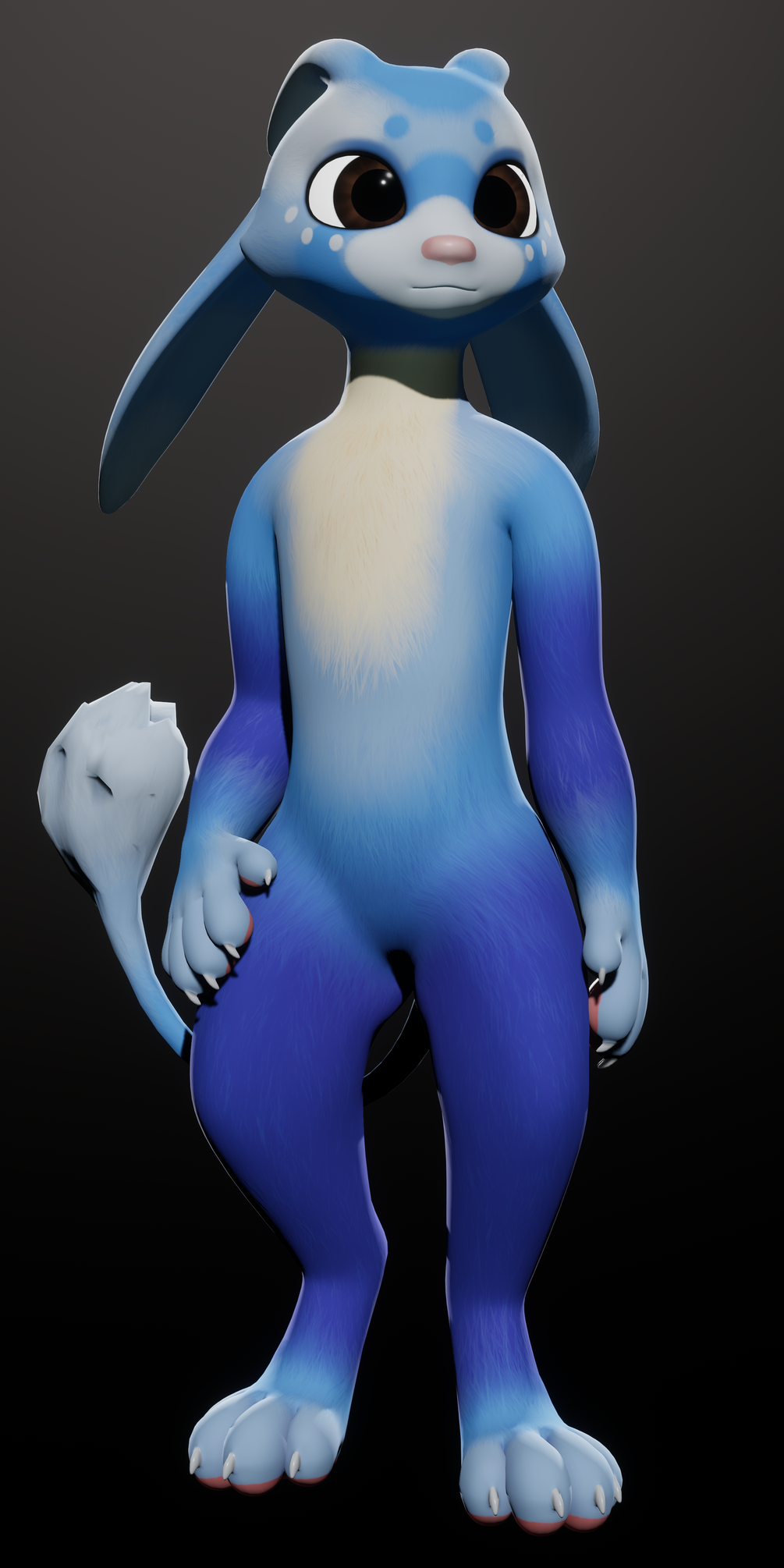 You'll get a Unity Package with avatars set up for both PC and Quest VRChat, the Substance Painter project file, a Photoshop PSD file, and the original Blender 3D files.