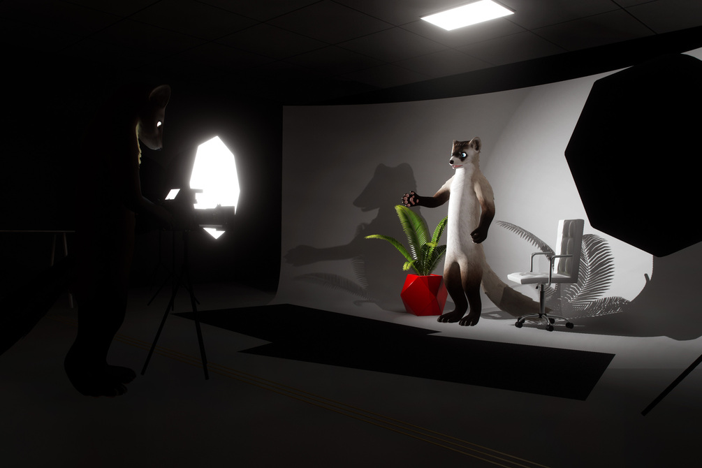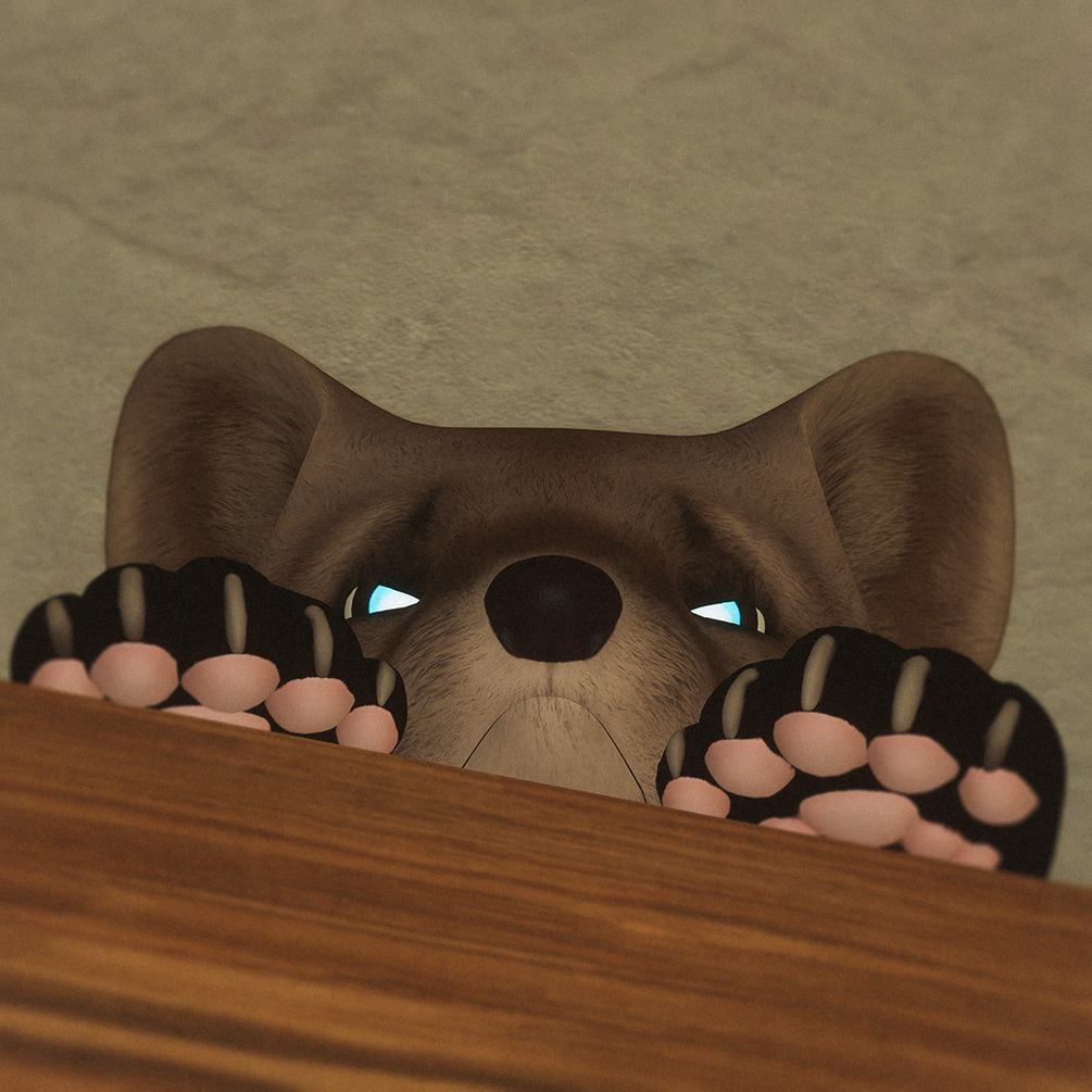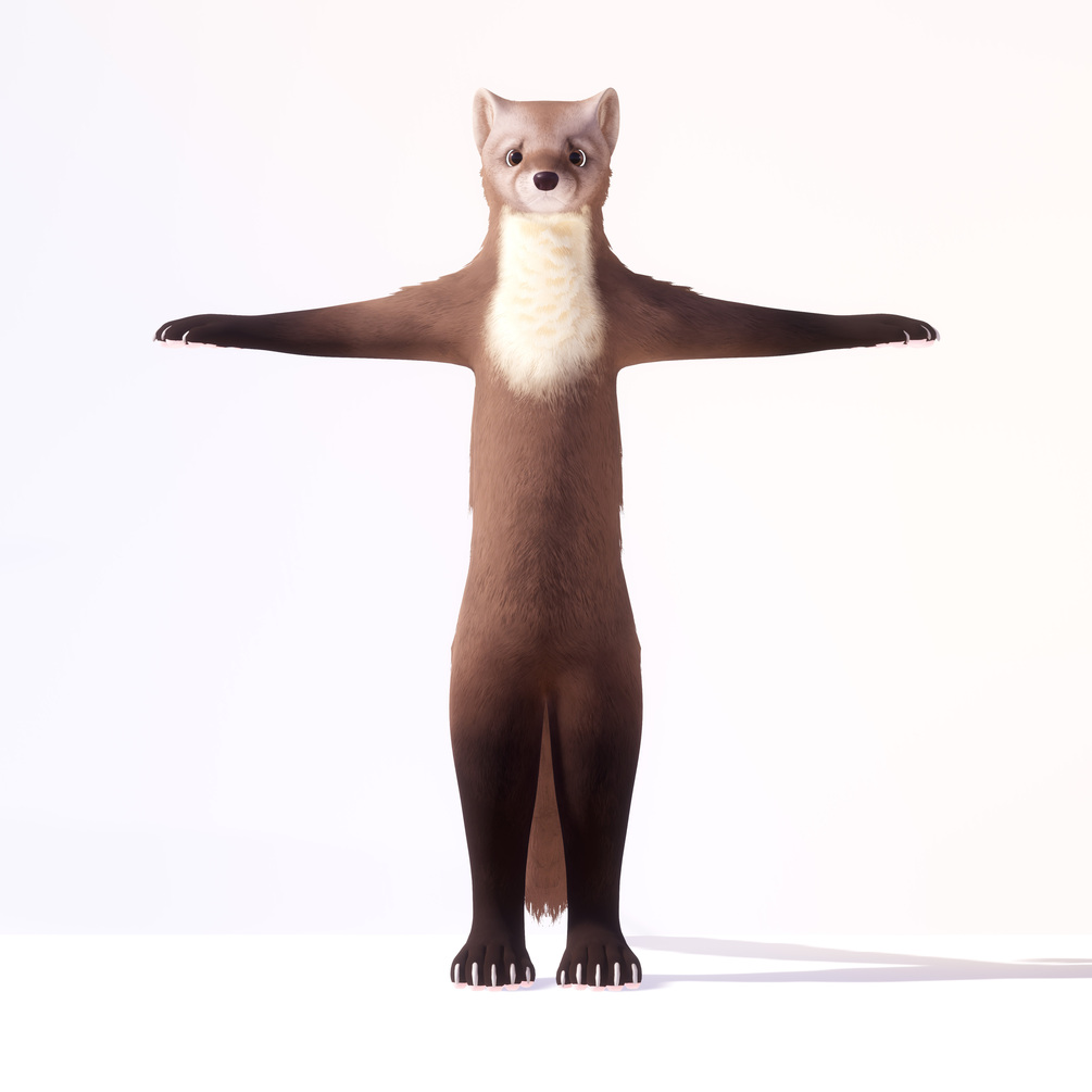 A fluffy Pine Marten/Weasel Avatar, designed & set up for use in VRChat.